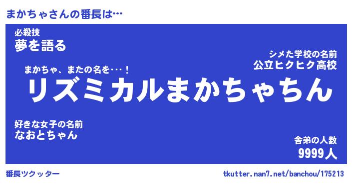 | 意味不明あだ名 | 『ペロリンまかちゃ』『永久保存まかちゃ』 |