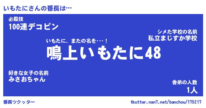 | 肩書あだ名 | 『いもたに御曹司』『いもたに総理大臣』 |