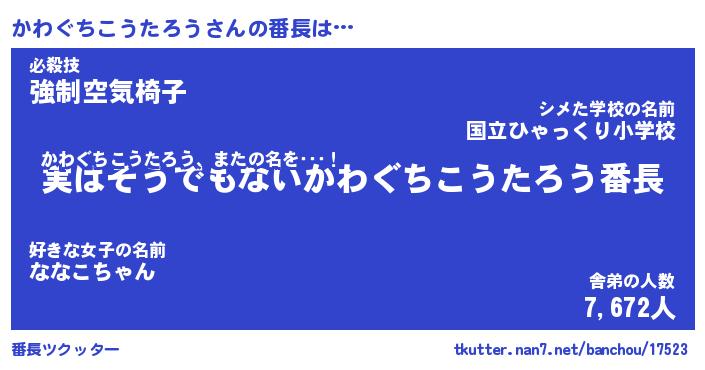 | 肩書あだ名 | 『かわぐちこうたろう御曹司』 |