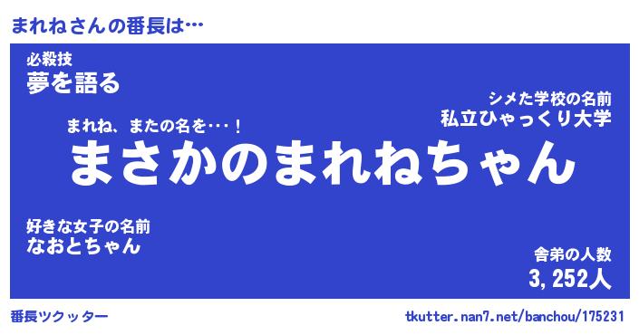 | 意味不明あだ名 | 『ペロリンまれね』『まれねフォーエバー』 |