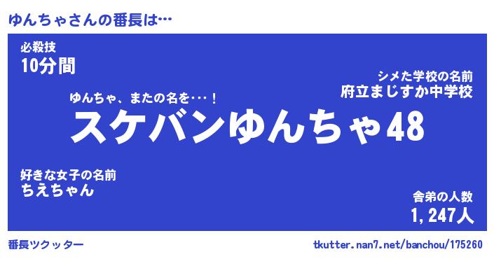 | 意味不明あだ名 | 『ペロリンゆんちゃ』『永久保存ゆんちゃ』 |
