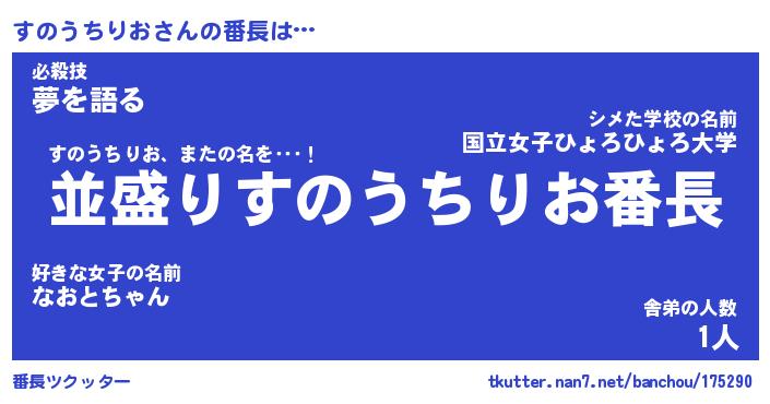| 肩書あだ名 | 『すのうちりお店長』『すのうちりお班長』 |