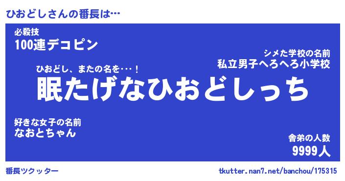 | ピコ太郎風あだ名 | 『ヒコ一郎』『ピヒ次郎』『ヒオ一郎』 |