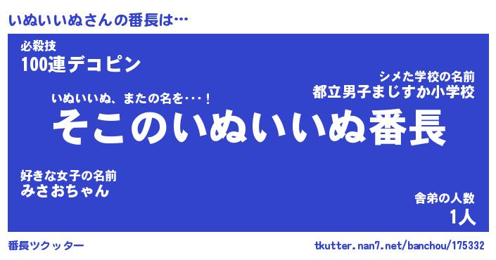 | ポケモン風あだ名 | 『イヌチュウ』『イヌイダネ』 |