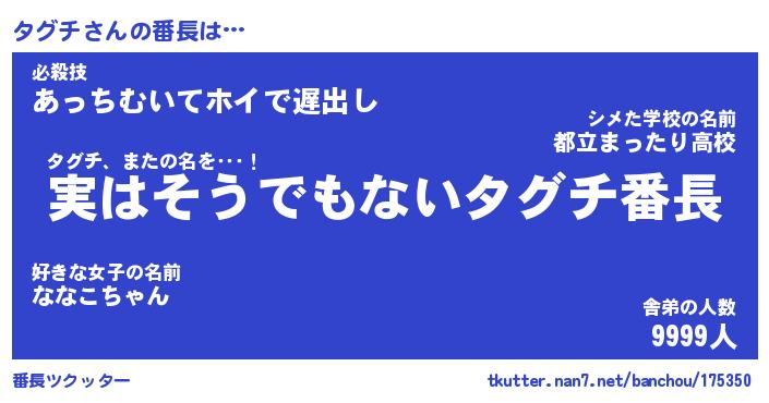| ヒーロー風カッコイイあだ名 | 『スーパータグチ』『ウルトラタグチマン』 |