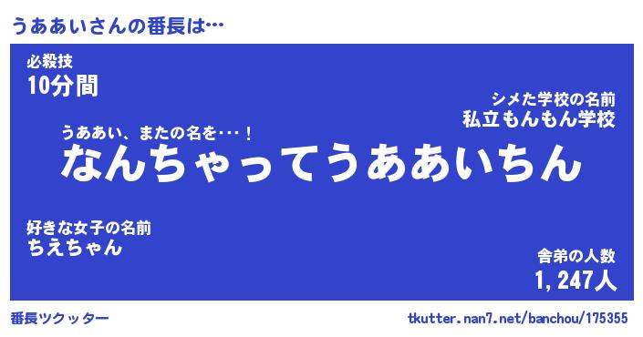 | 意味不明あだ名 | 『ペロリンうああい』『永久保存うああい』 |