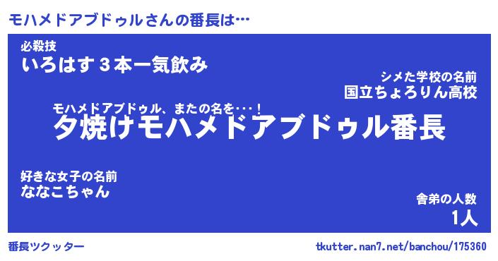 | ヒーロー風カッコイイあだ名 | 『スーパーモハメドアブドゥル』 |