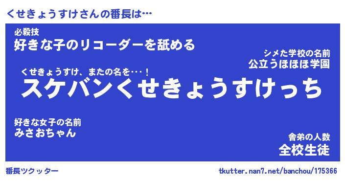 | ヒーロー風カッコイイあだ名 | 『スーパークセキョウスケ』 |