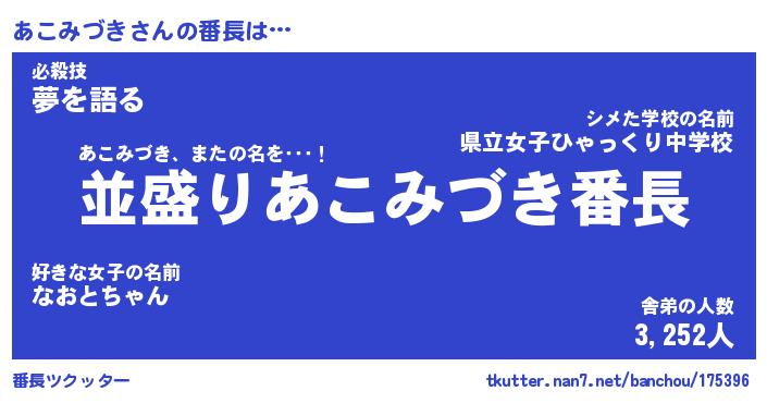 | 伝説のあだ名 | 『不死鳥のスナイパーあこみづき』 |