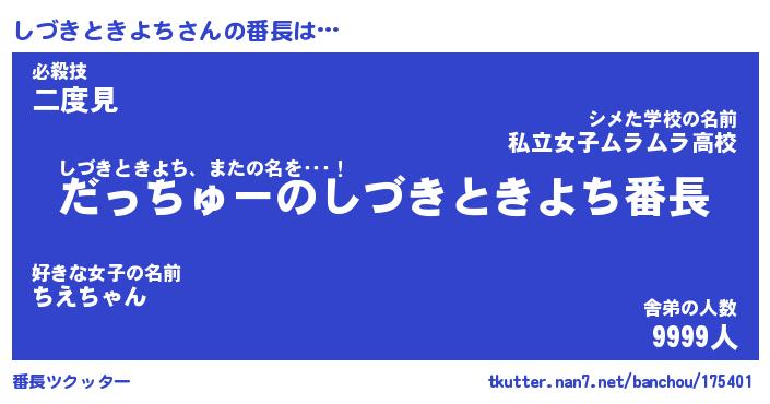 | ピコ太郎風あだ名 | 『シコ二郎』『ピシ八郎』『シヅ五郎』 |