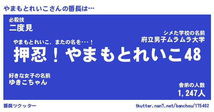 | 2回繰り返すあだ名 | 『やまやま』『ややまま』『ぬるぬる』 |