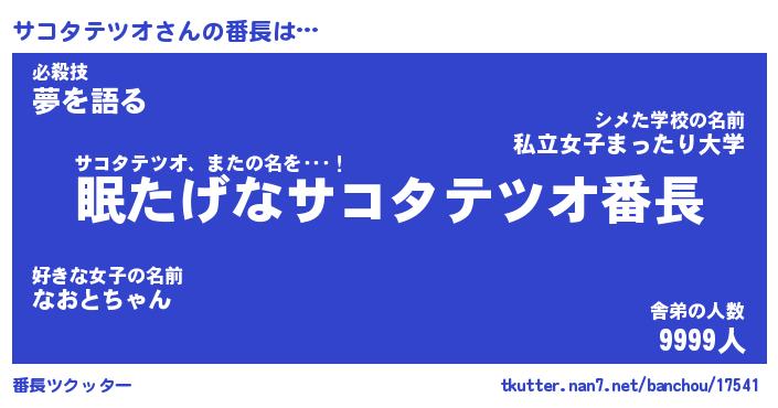 | 肩書あだ名 | 『サコタテツオCEO』『サコタテツオ班長』 |