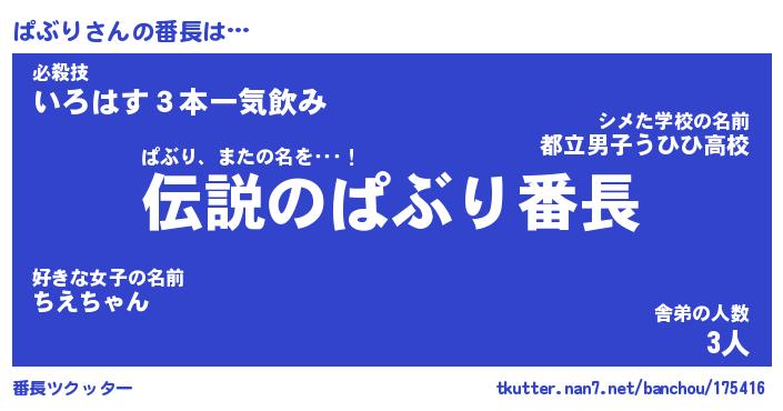 | 意味不明あだ名 | 『ペロリンぱぶり』『ぱぶりフォーエバー』 |