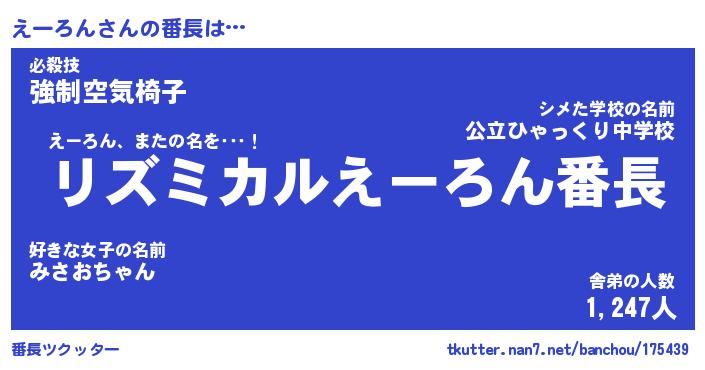 | ヒーロー風カッコイイあだ名 | 『スーパーエーロン』『銀牙騎士エー』 |