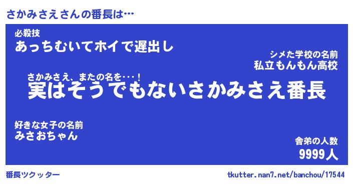 | 肩書あだ名 | 『さかみさえ店長』『さかみさえ大統領』 |
