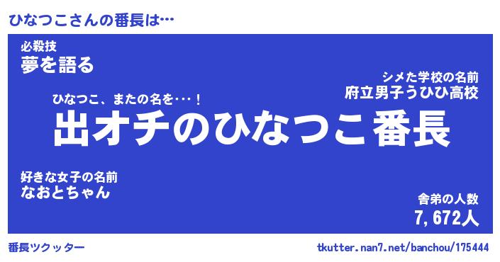 | ヒーロー風カッコイイあだ名 | 『スーパーヒナツコ』『銀牙騎士ヒナ』 |