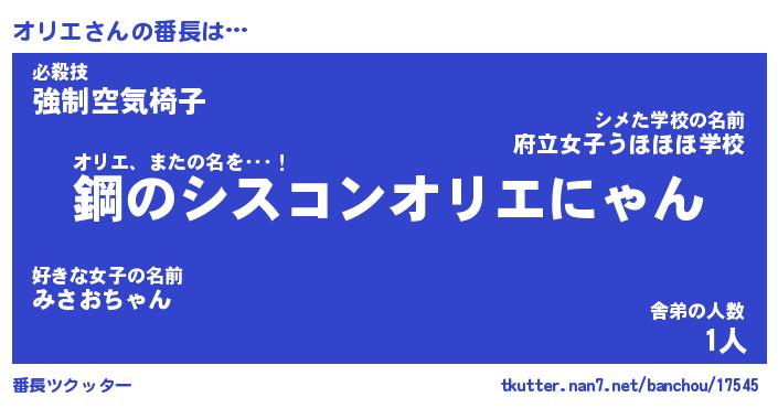 | ヒーロー風カッコイイあだ名 | 『スーパーオリエ』『ウルトラオリエマン』 |