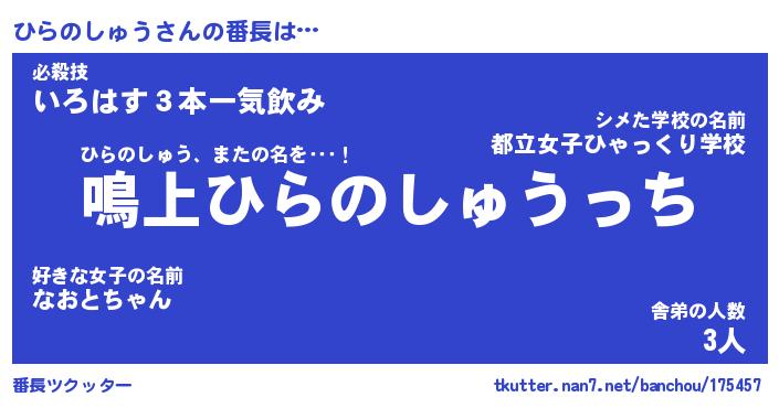 | 肩書あだ名 | 『ひらのしゅう店長』『ひらのしゅう教頭』 |