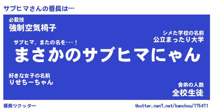 | ヒーロー風カッコイイあだ名 | 『スーパーサブヒマ』『暗黒騎士サブ』 |
