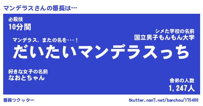 | ファンタジー風あだ名 | 『マンフェル』『エターナルマンデラスー』 |