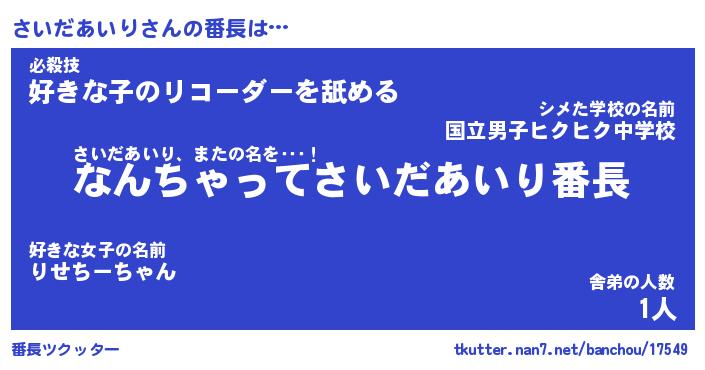 | 欧米人風あだ名 | 『マイケルさいだあいり』 |