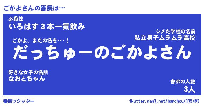 | ピコ太郎風あだ名 | 『ゴコ二郎』『ピゴ五郎』『ゴカ十郎』 |