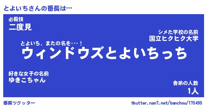 | 意味不明あだ名 | 『ペロリンとよいち』『永久保存とよいち』 |