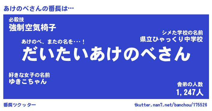 | 意味不明あだ名 | 『ペロリンあけのべ』『永久保存あけのべ』 |