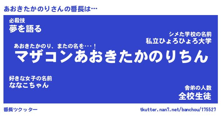 | 肩書あだ名 | 『あおきたかのり御曹司』 |