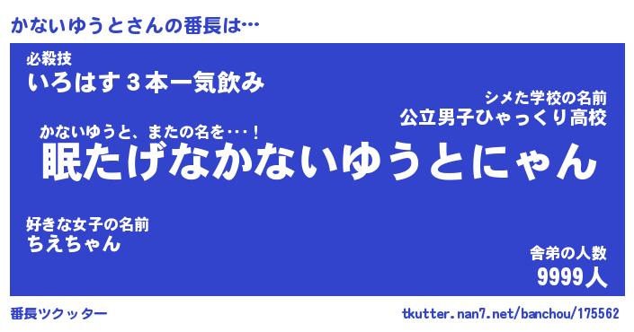 | 伝説のあだ名 | 『封印されしスナイパーかないゆうと』 |