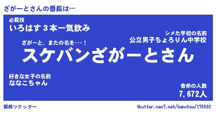| 意味不明あだ名 | 『ペロリンざがーと』『永久保存ざがーと』 |