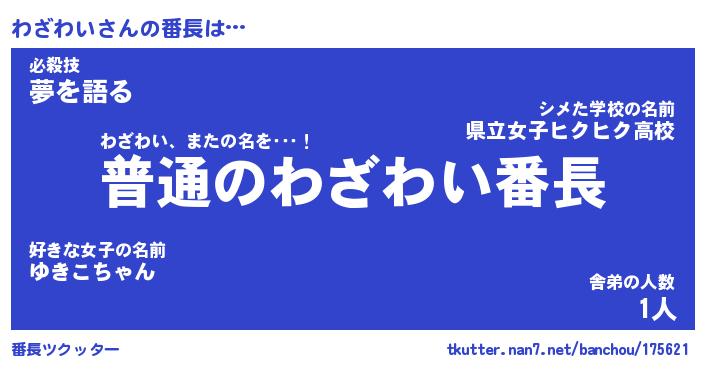| ファンタジー風あだ名 | 『ワザフェル』『エターナルワザワイー』 |