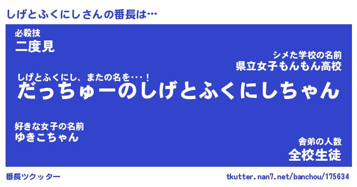 | 2回繰り返すあだ名 | 『しげしげ』『ししげげ』『ぬれぬれ』 |