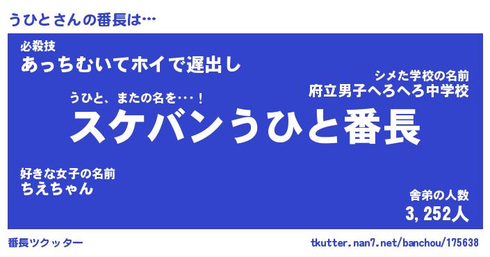 | ファンタジー風あだ名 | 『ウヒフェル』『エターナルウヒトー』 |