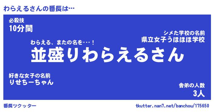 | 意味不明あだ名 | 『ペロリンわらえる』『永久保存わらえる』 |