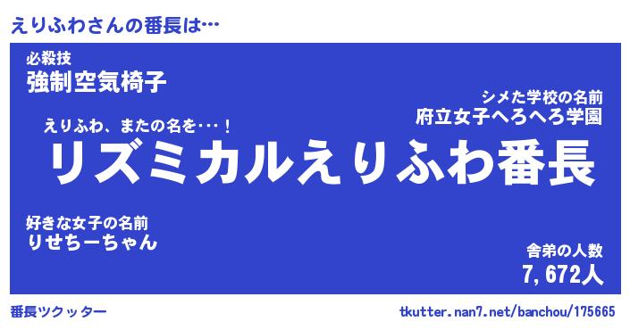 | 欧米人風あだ名 | 『マイケルえりふわ』『ウサインえりふわ』 |