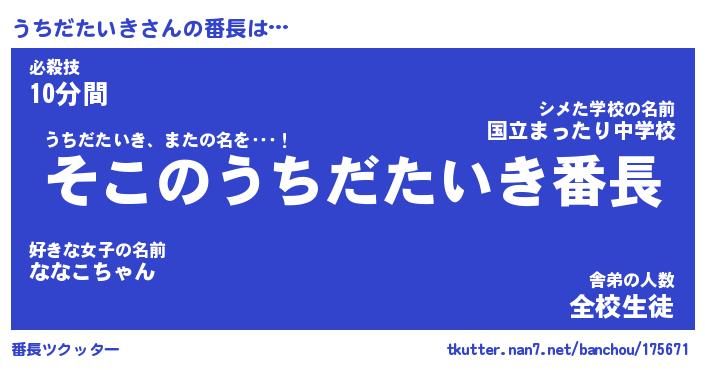 | ポケモン風あだ名 | 『ウチチュウ』『ウチダダネ』 |