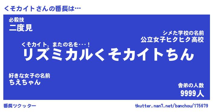 | 伝説のあだ名 | 『伝説のスナイパーくそカイト』 |
