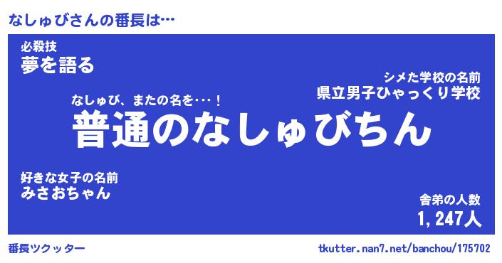 | ポケモン風あだ名 | 『ナシチュウ』『ナシュダネ』 |