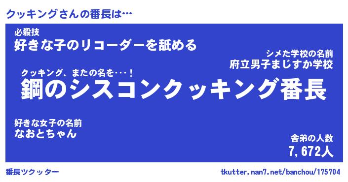 | ヒーロー風カッコイイあだ名 | 『スーパークッキング』『炎刃騎士クッ』 |