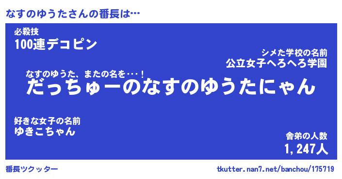 | ヒーロー風カッコイイあだ名 | 『スーパーナスノユウタ』『銀牙騎士ナス』 |