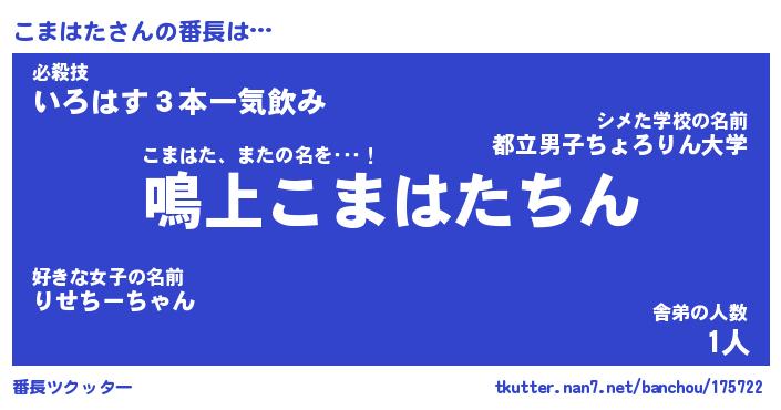 | 意味不明あだ名 | 『ペロリンこまはた』『永久保存こまはた』 |