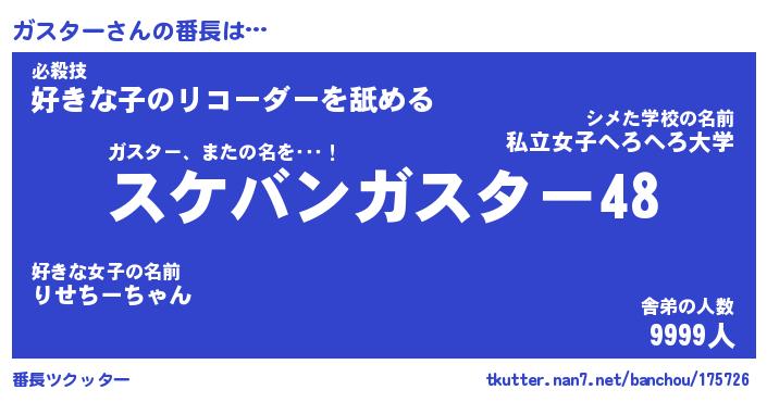 | ヘコむあだ名 | 『ガスにー』『牛乳』『ガス太郎』 |