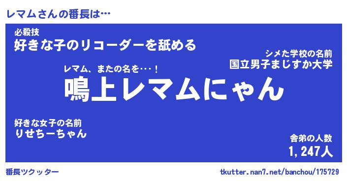 | ポケモン風あだ名 | 『レマチュウ』『レマムダネ』 |