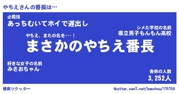 | ファンタジー風あだ名 | 『ヤチフェル』『エターナルヤチエー』 |