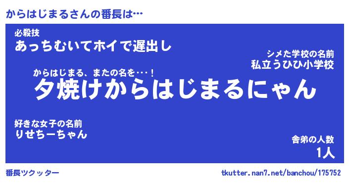| 2回繰り返すあだ名 | 『からから』『かからら』『いじいじ』 |