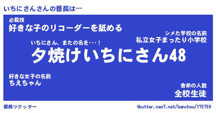 | ポケモン風あだ名 | 『イチチュウ』『イチニダネ』 |