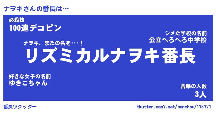 | ファンタジー風あだ名 | 『ナヲフェル』『エターナルナヲキー』 |
