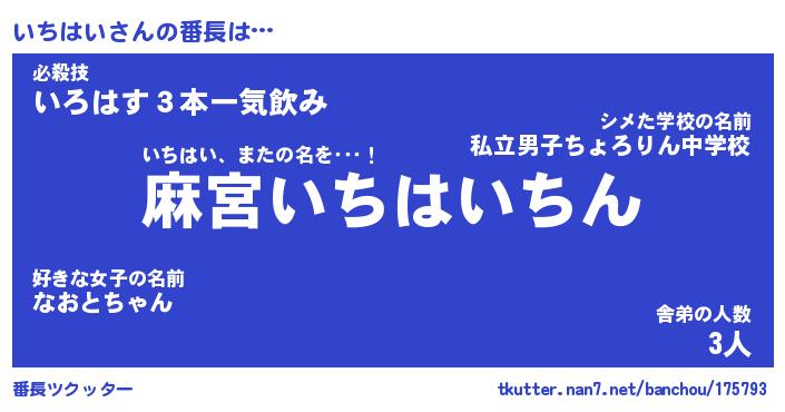 | 意味不明あだ名 | 『ペロリンいちはい』『永久保存いちはい』 |
