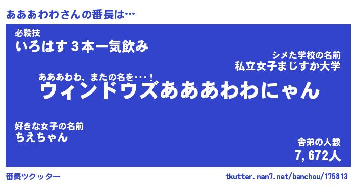 | ファンタジー風あだ名 | 『アアフェル』『エターナルアアアワワー』 |